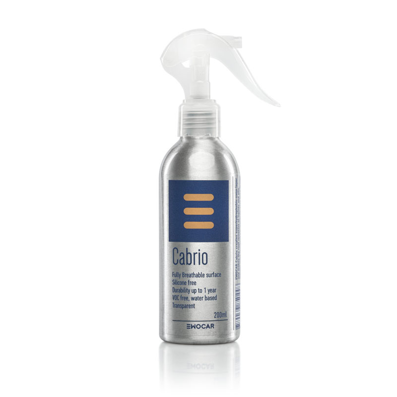 Ewocar Cabrio ist eine Nanoversiegelung, die eine extreme hydrophobe Schutzschicht auf allen Cabrio-Textilverdecken hinterlässt. Die Verdeck-Versiegelung beugt einem Vollsaugen bei Regen vor und sorgt zudem für ein schnelles Trocknen des Verdecks. Durch die Versiegelung des Texilverdecks entsteht ein wirkungsvoller Schutz vor Nässe und UV-Strahlung. Eine regelmässige Anwendung verhindert so das Ausbleichen des Verdeckstoffes und erhält die gepflegte Optik des Cabrio Verdecks.